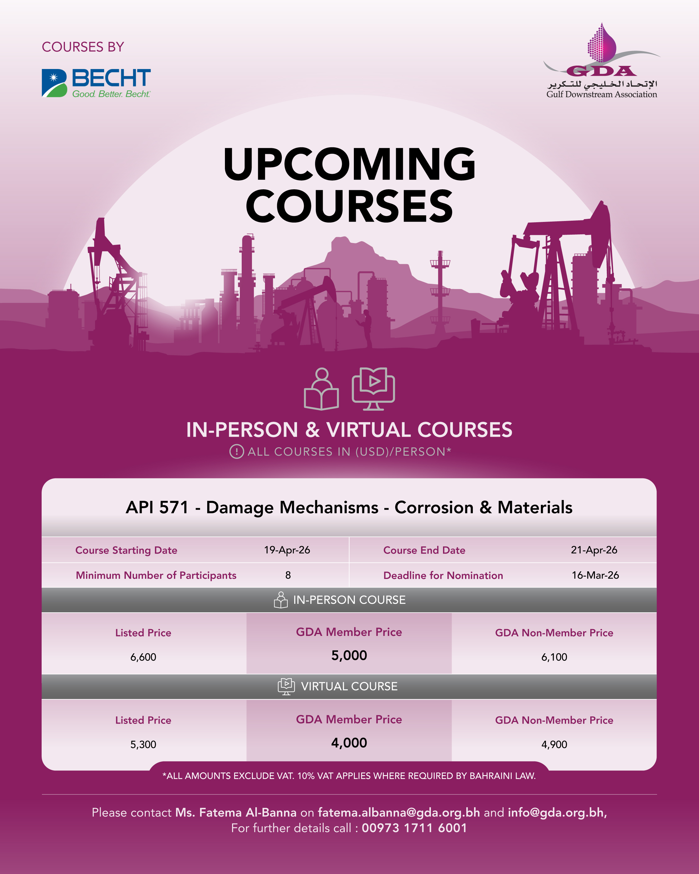 This course is ideal for professionals involved in refinery operations and maintenance, particularly those responsible for asset integrity and inspection. It is designed for: